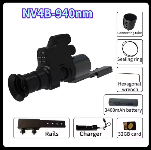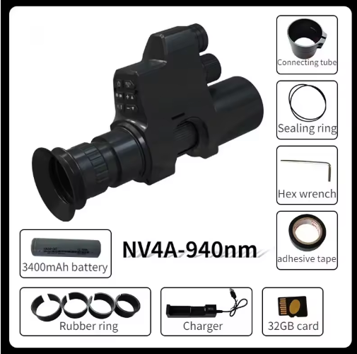 NV4A Infrared Night Vision Monocular 4X Zoom HD Video Camera Device Round Screen Crosshair Attach Night Hunting IR Digital Scope