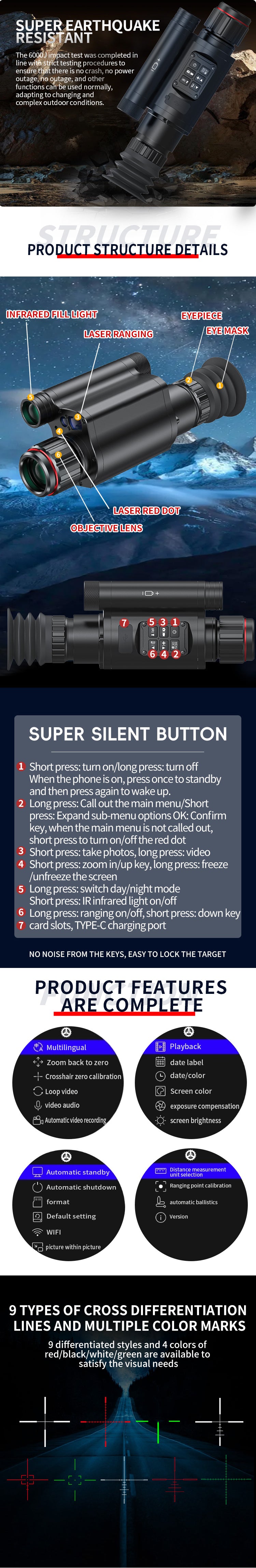 NV076 monocular night vision device 1000m laser ranging 450m night vision range WIFI ballistic calculation 35mm